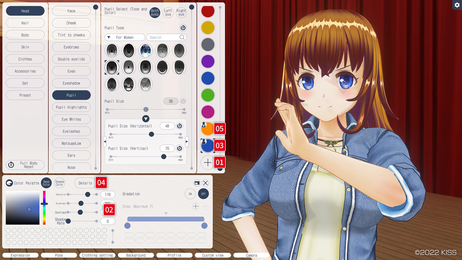 Press this button to jump to the Detail Settings screen. This changes the human-shaped Edit Color icon to the Detail Settings icon.