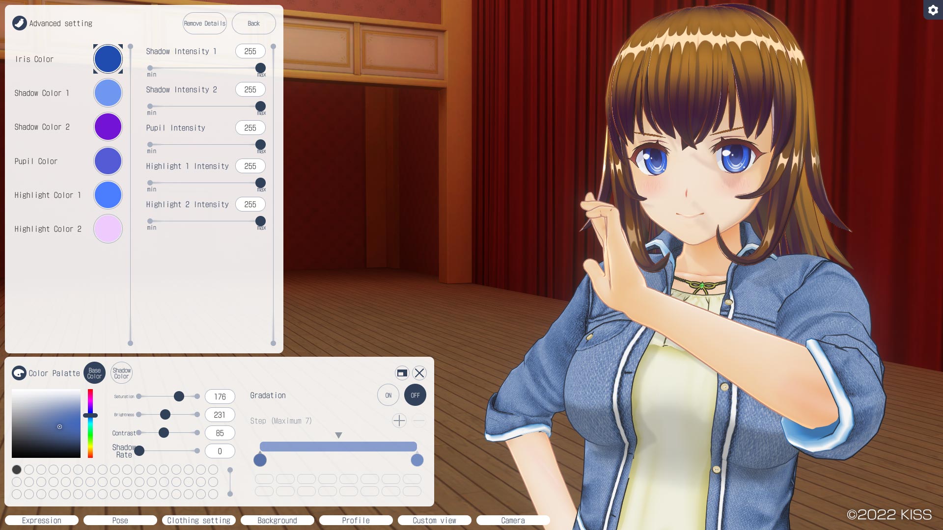 Click the + icon in Color Palette to display. You can edit the colors of the selected item. Additionally, the Gradation Settings window will be displayed when Gradation can be applied to the selected item.