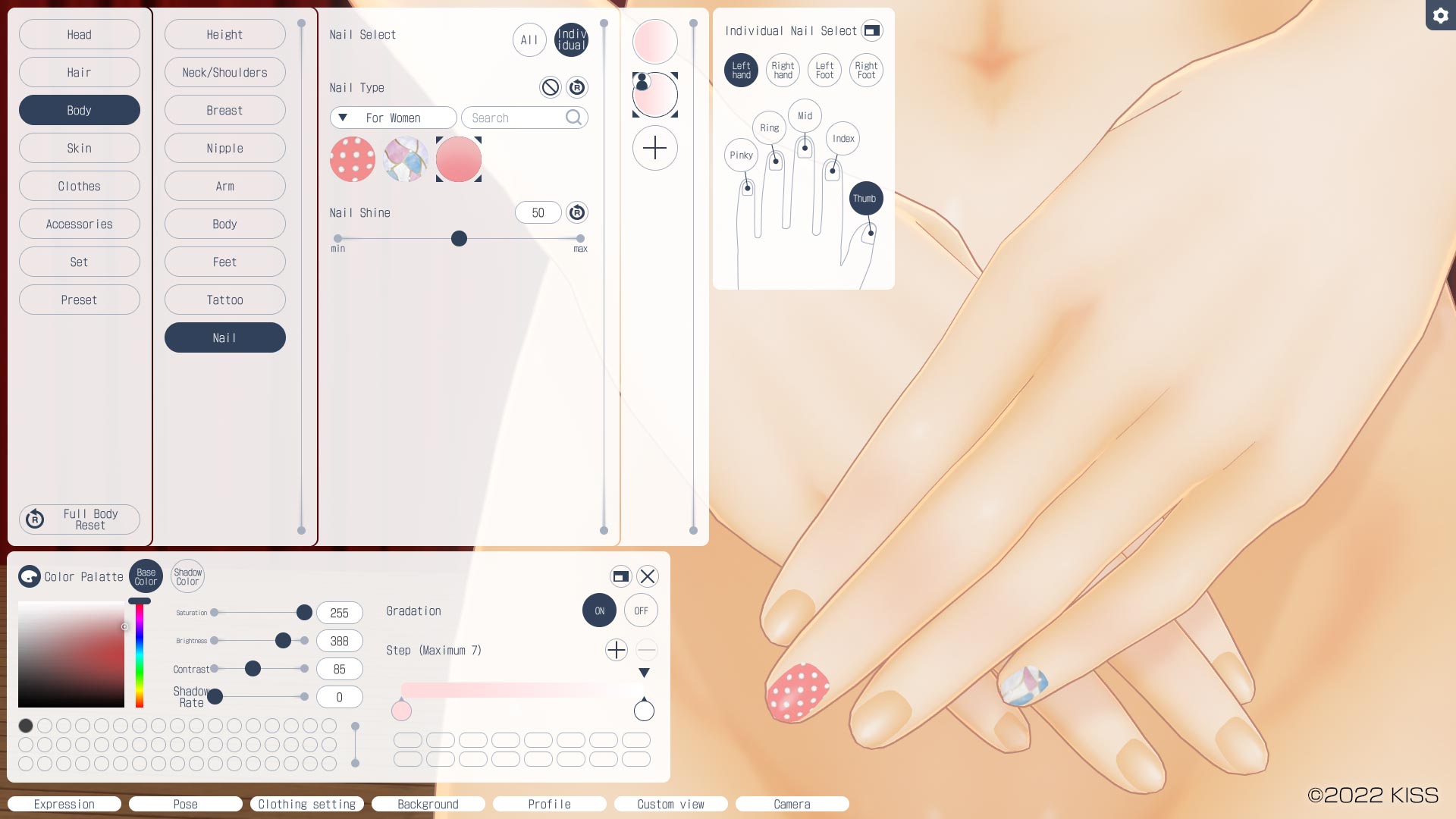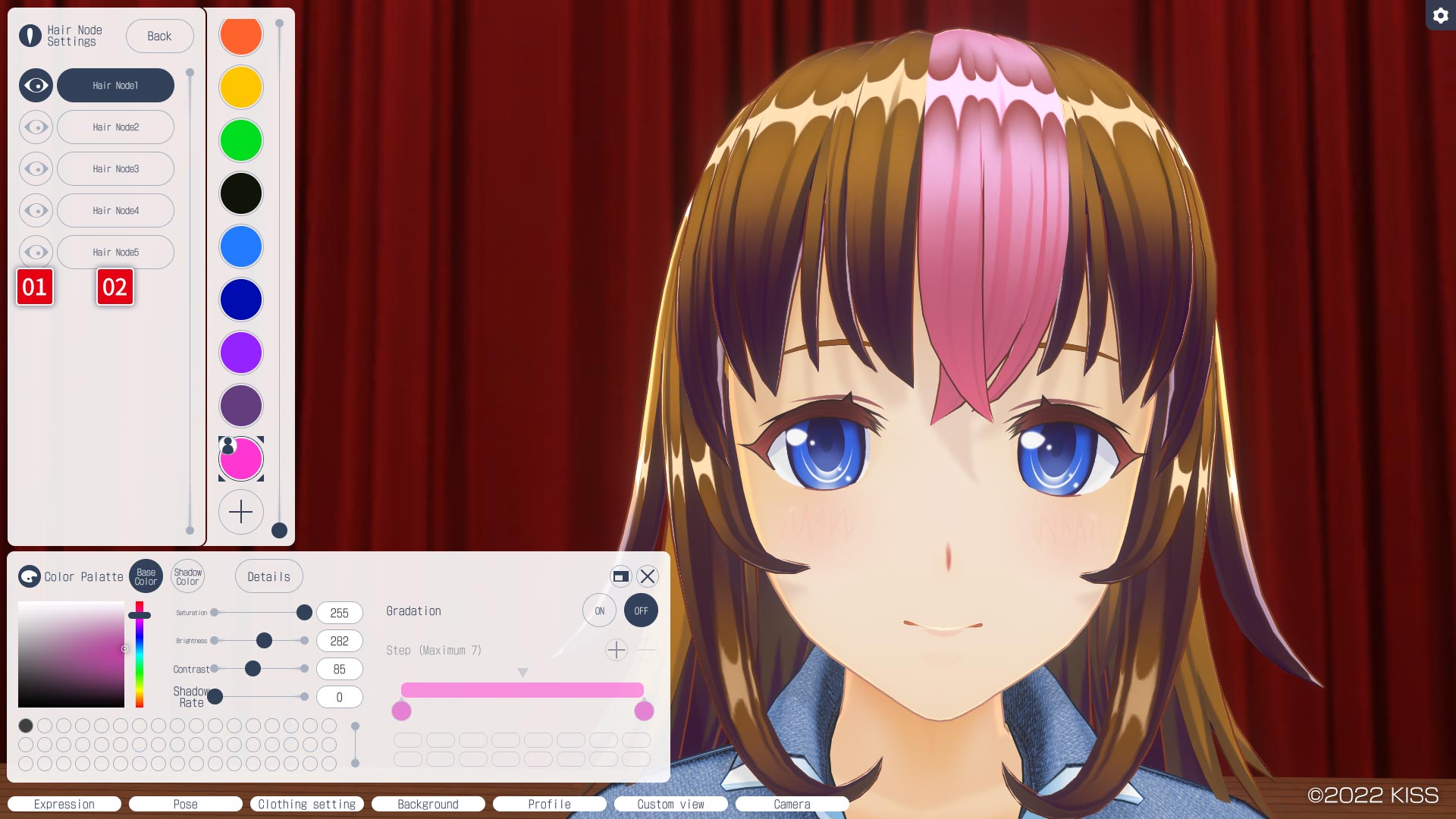 Opens a screen that allows you to change the color of the hair nodes. See "Hair Node Settings" for more details.