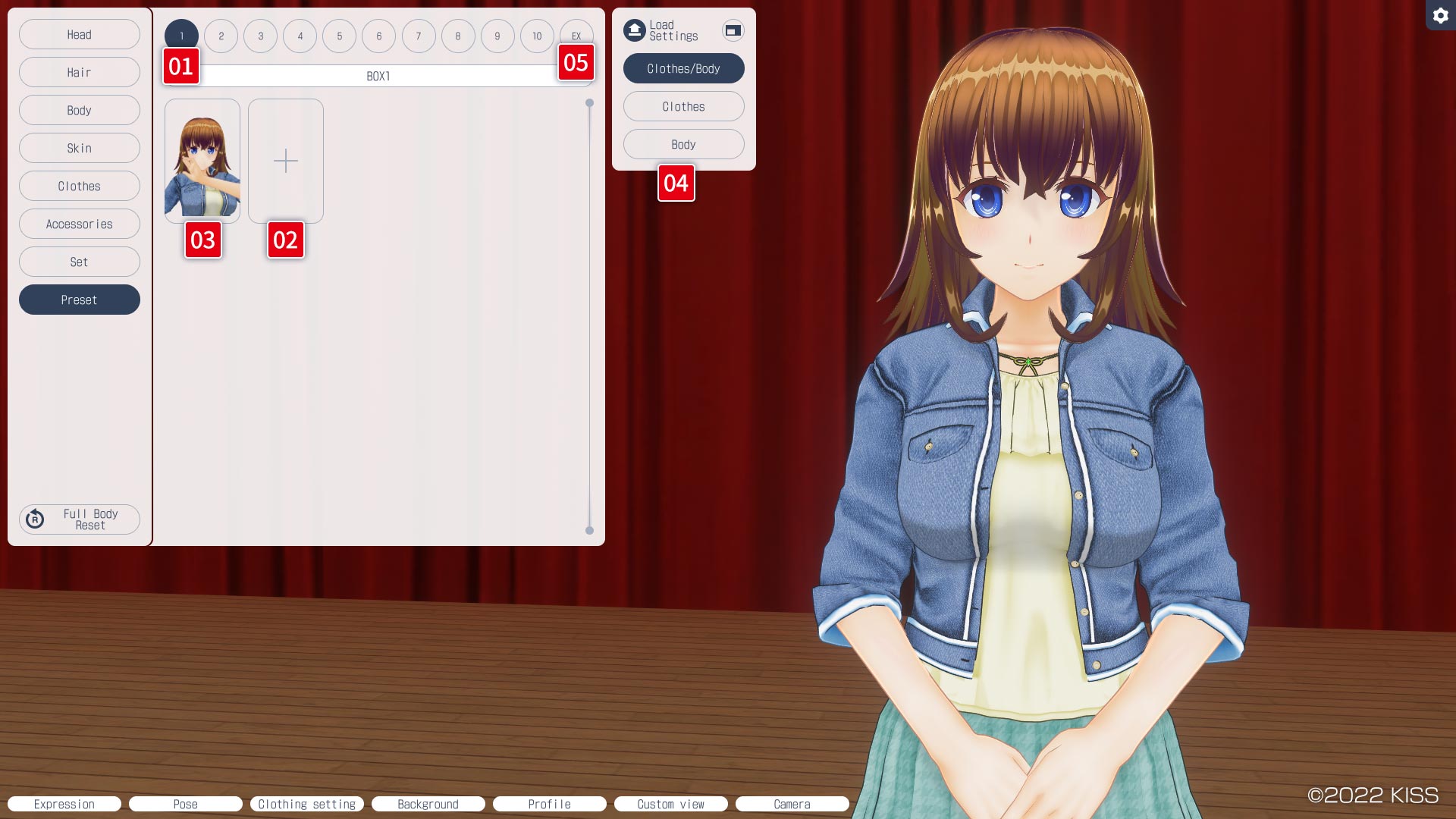 Press this button to save the character you are currently editing as a preset.
